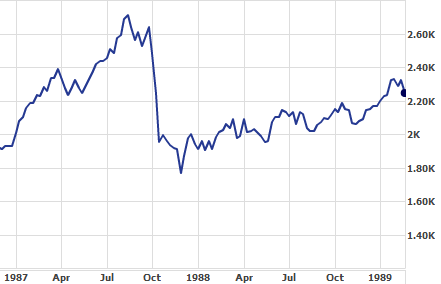 19 octobre 1987, l’indice perdra 508 points, sa plus grande chute journalière en %, soit