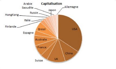 On constate que le classement est largement dominé par les Etat-Unis, regroupant plus du tiers du top 50. Notons toutefois l’apparition de la Chine, classée troisième, à quelques encablures du Royaume-Uni. La Suisse se classe septième grâce à 3 sociétés, Nestlé, Novartis et Roche. UBS est sortie du top 50.