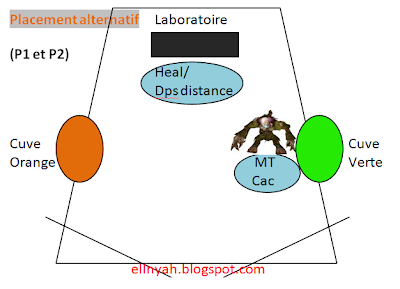 Placement (stratégie découverte) Le raid se place sous la cuve orange au début du combat, jusqu’à l’apparition du premier limon (vert). Une fois ce limon mort, le raid se place sous la cuve verte et alterne ainsi jusqu’à la fin du combat.