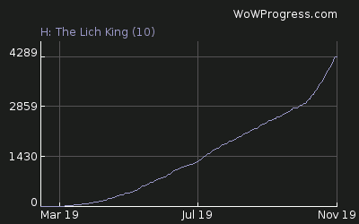 Félicitation, nous avons pu tomber le Roi Liche avant la mise à jour 4.0, qui peut être considérée comme un énorme nerf de ce boss (et de tout le reste de la Citadelle). Les statistiques de WoW Progress (LK 10 HM) sont très éloquentes à ce niveau: