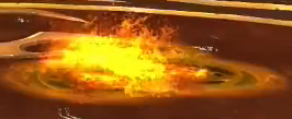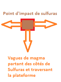 Linceul de flammes: un tiers de la plateforme sera englouti dans des panaches de lave. Ne restez en aucun cas dans cette zone.