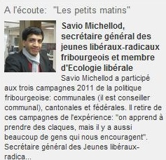 J’ai la chance d’être l’invité de l’émission de la RTS « Les petits matins », que vous vous réécouter ici. J’ai pu y parler de mon engagement politique au sein de la jeunesse libérale-radicale du canton de Fribourg.