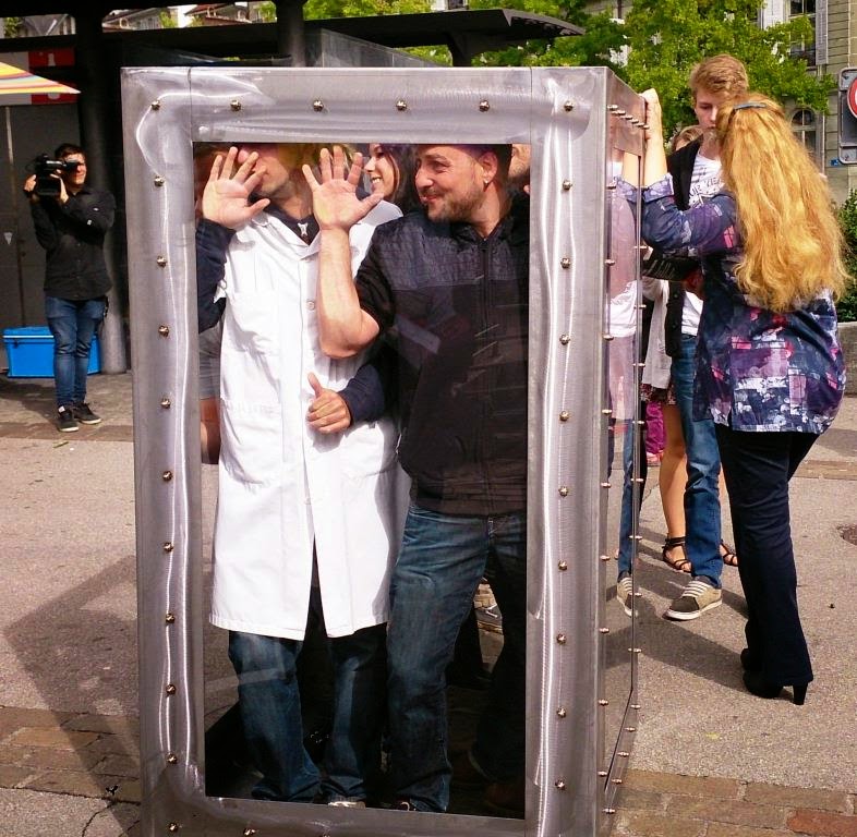 A Romont A Fribourg, avec les figurants et la caisse en verre