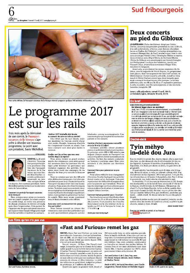 Article paru dans La Gruyère, 15 avril 2017 – Sophie Murith
