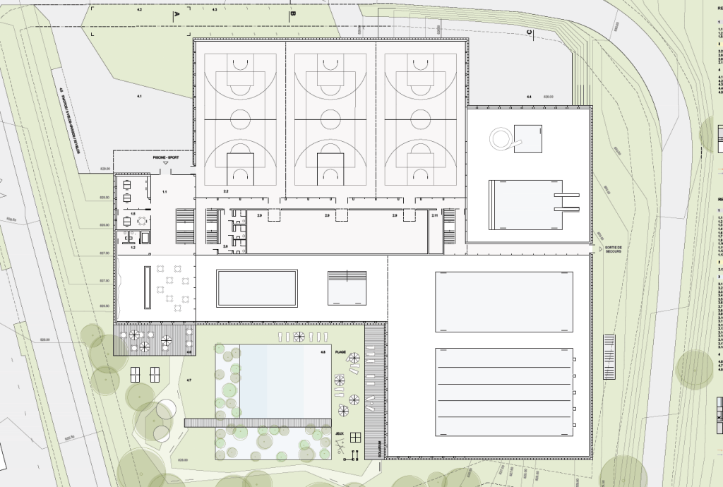 Car au départ, soyons honnêtes, les choses semblaient assez claires. Le maître d’ouvrage avait, à l’interne, exprimé une préférence : celle d’une superposition des deux programmes — le centre de natation en dessous, la salle de sport au-dessus. C’était logique, compact, rationnel. Nous avions même demandé — et obtenu après moult péripéties— la modification du plan d’aménagement de détail du secteur concerné, afin que les hauteurs autorisées permettent de réaliser cette superposition.